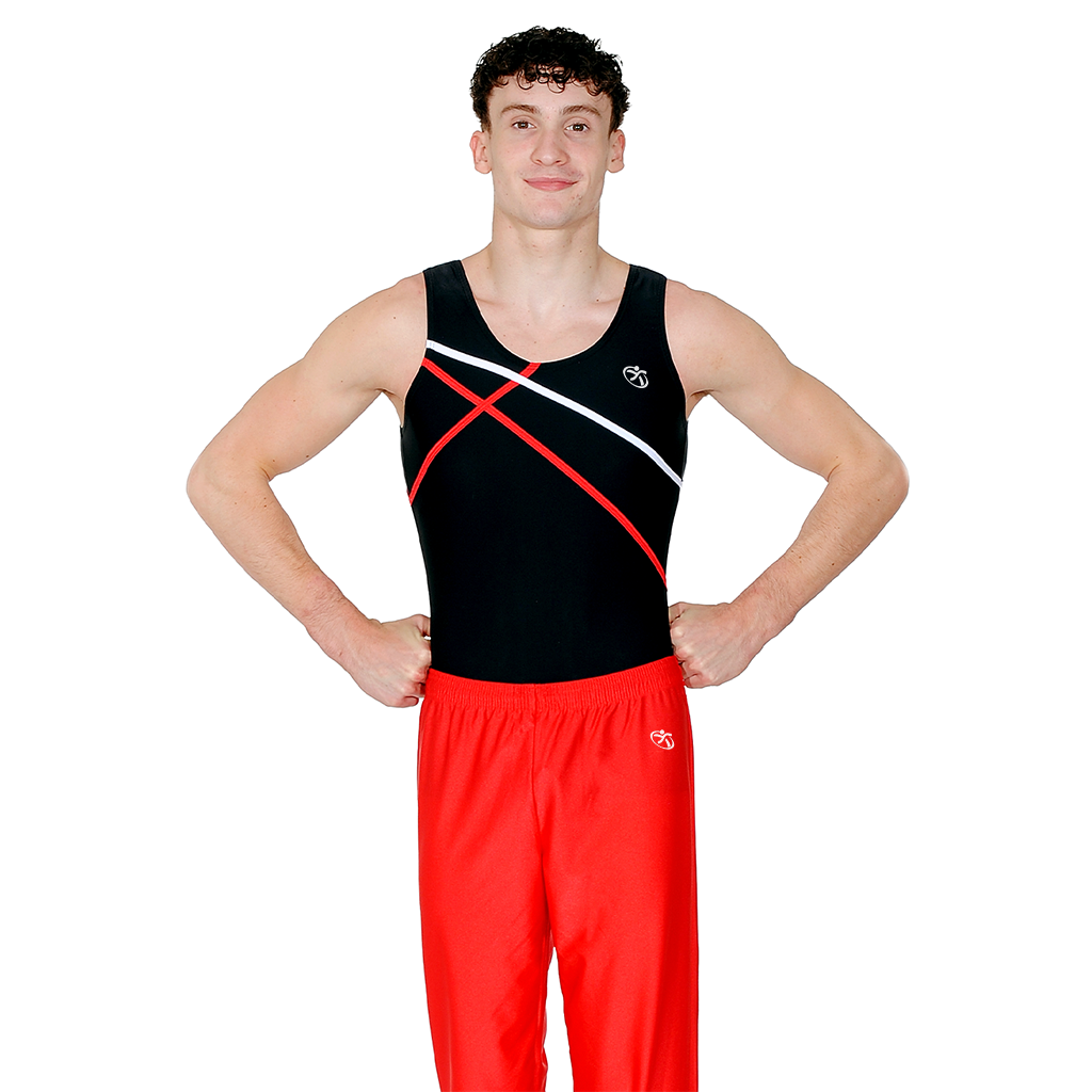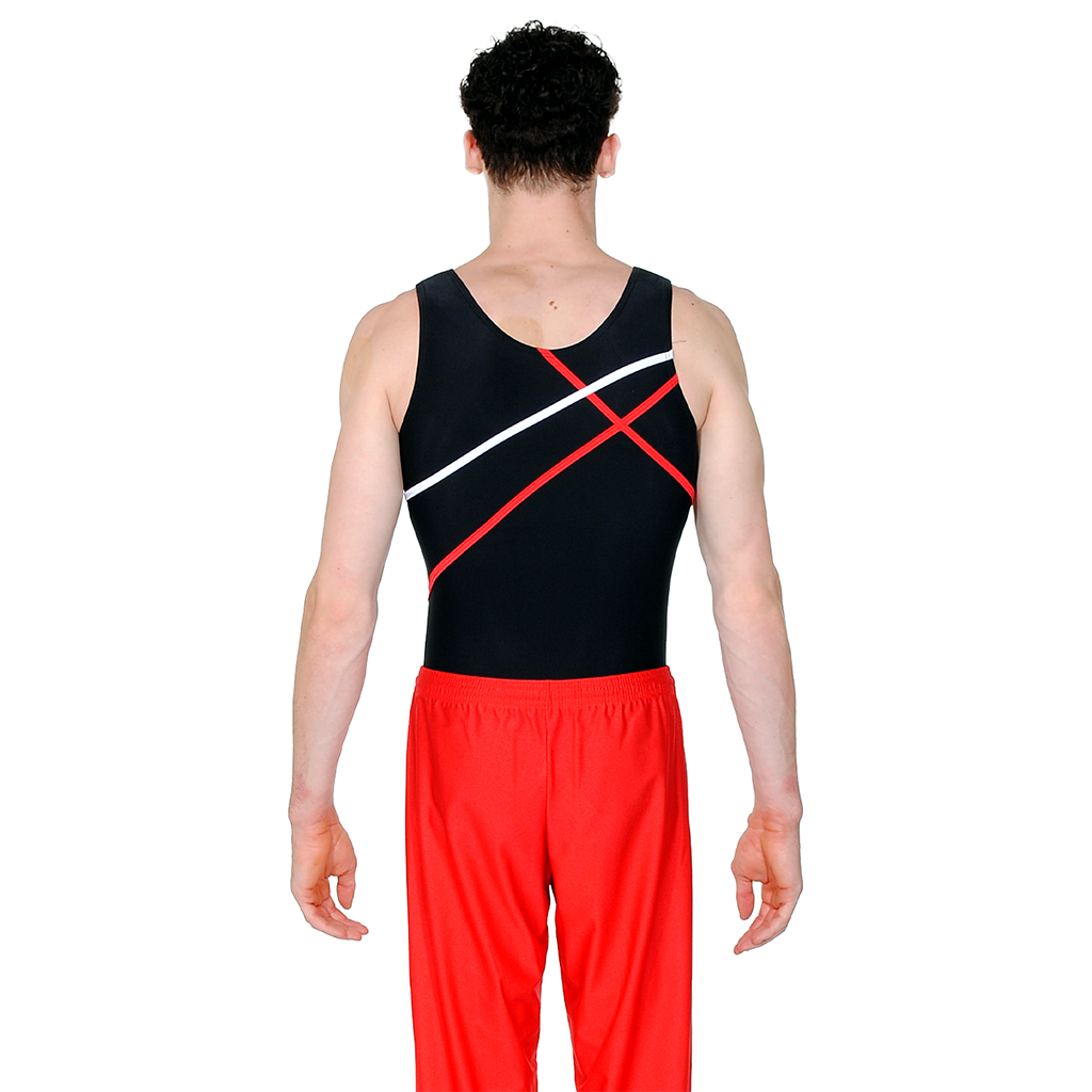 The Atlas Strike Men’s Leotard is designed for gymnasts who perform with strength, control, and precision. Featuring a bold black base accented with dynamic red and silver crossing lines, this leotard delivers a powerful athletic presence while maintaining a clean and structured silhouette.