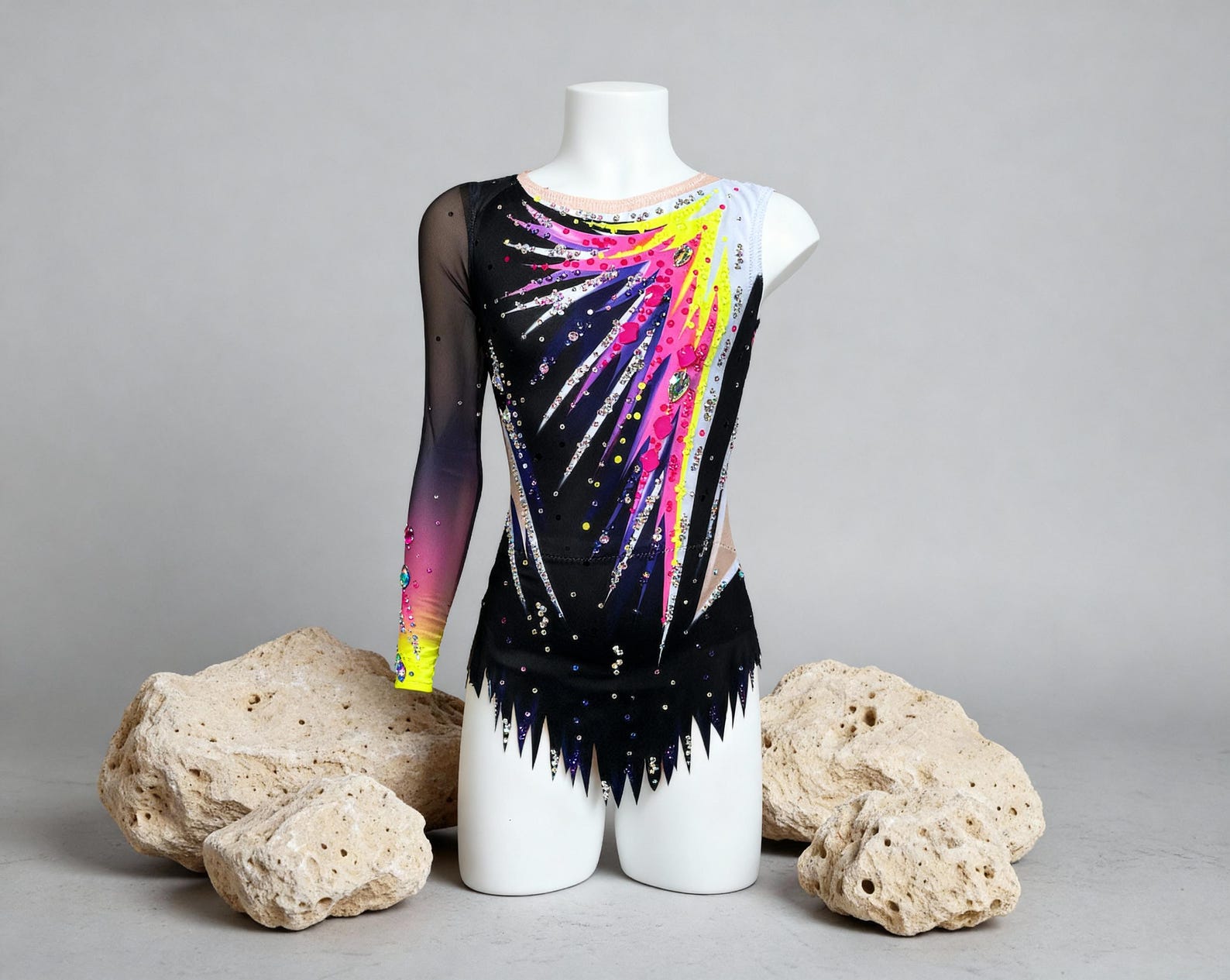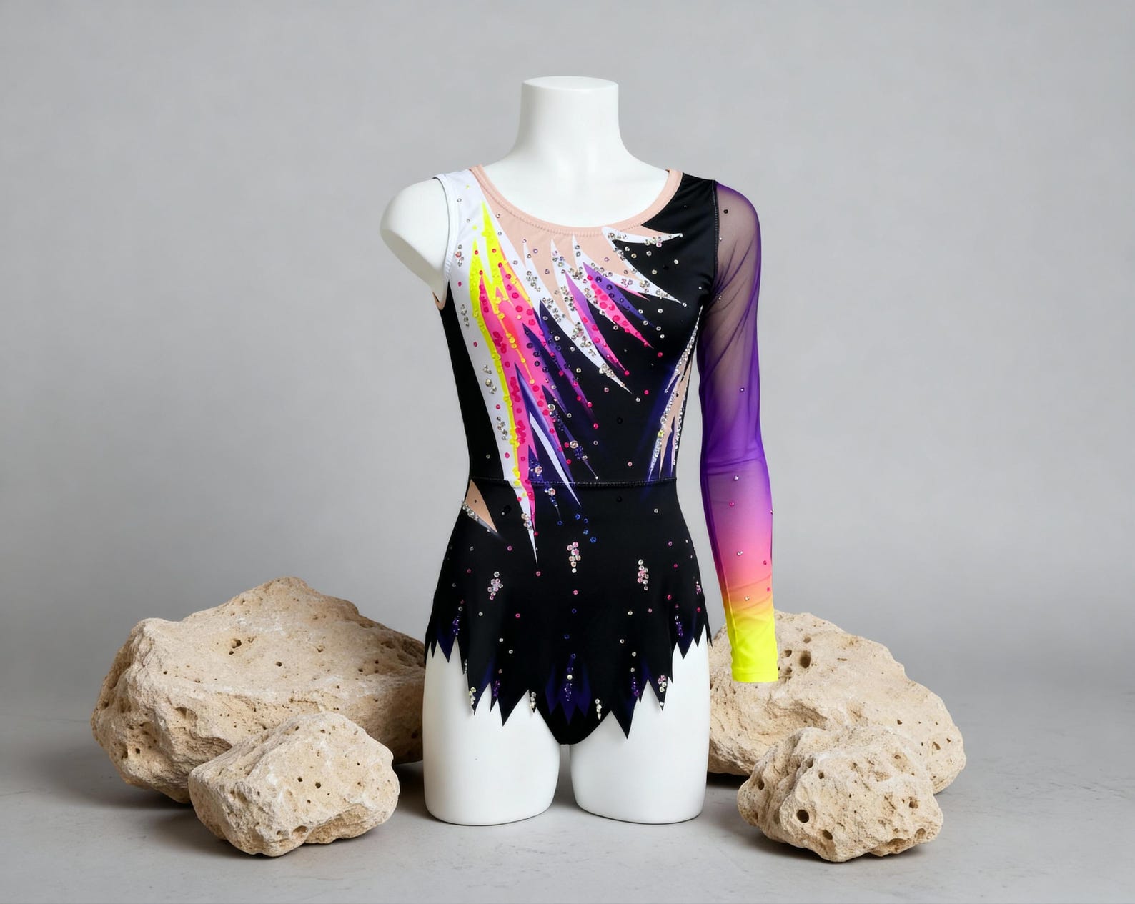 • Main fabric: high-quality elastane fabric, designed for elasticity, comfort and freedom of movement in rhythmic gymnastics.